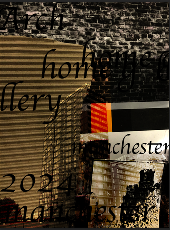 I used photoshop and overlays on photoshop of the chemograms and other textures made and had placed pictures of buildings in in those pictures and rasterised the building and picked a different style of overlay and used my paintbrushes to put arch and 2024. these were textures inspired by David Caron and Aaron Siskind.